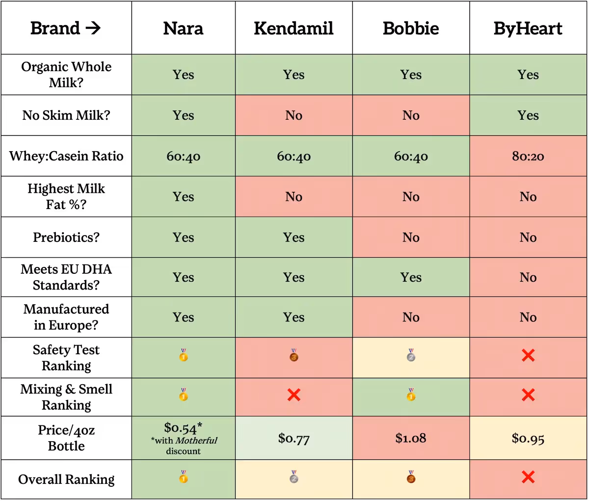 🥇 Nara checks all of our boxes with the formula that most closely resembles breast milk: